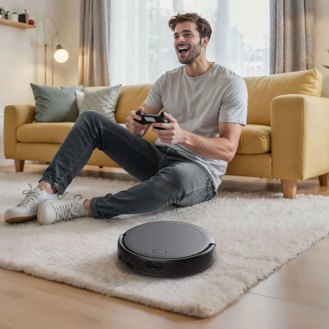 Equipped with a robust 7,000 Pa suction, a rolling brush, and a side brush, efficiently tackles dirt, crumbs, pet hair, and debris.