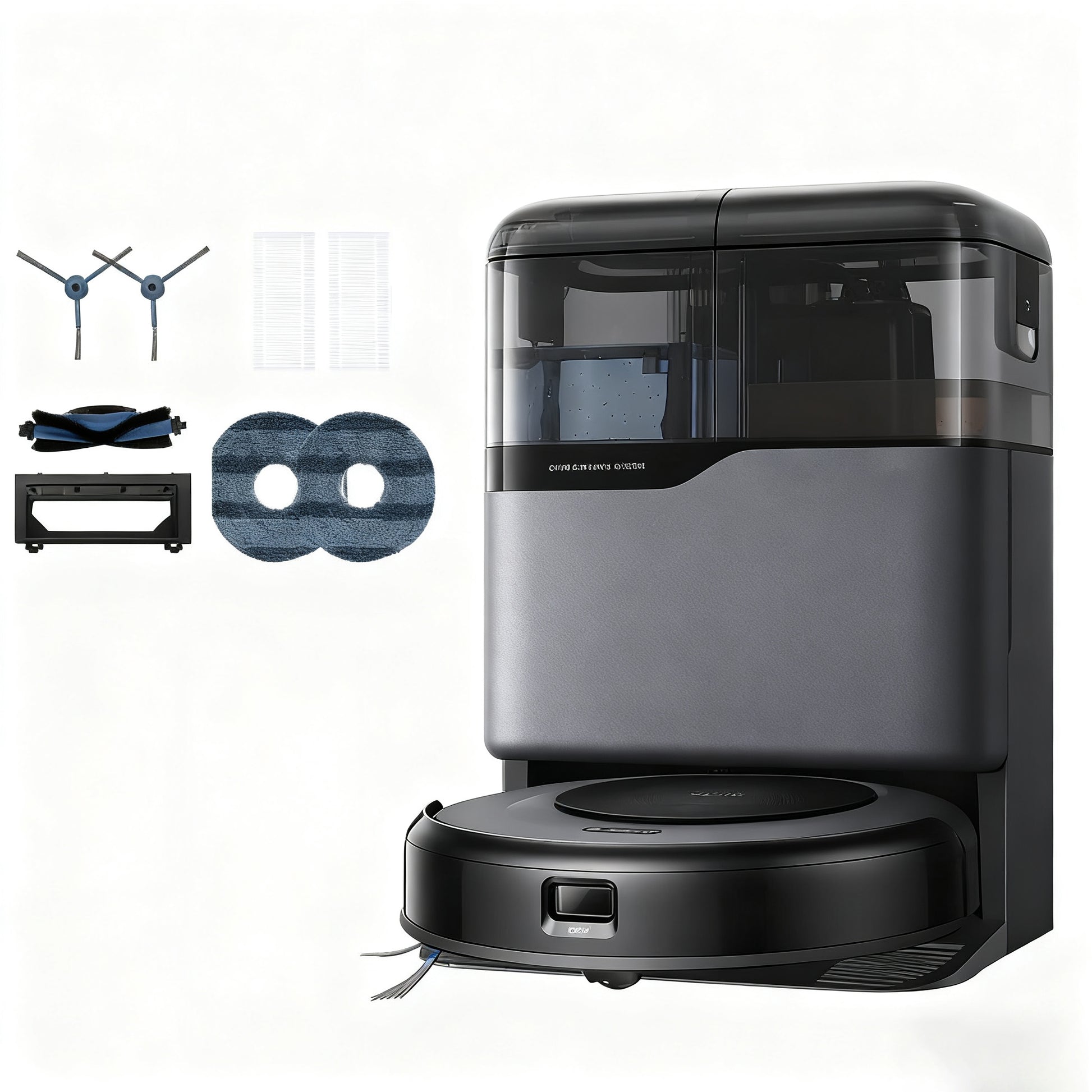 Fully automated system with auto emptying, mop washing, drying, and water refilling. Transparent water tanks let you easily check levels.