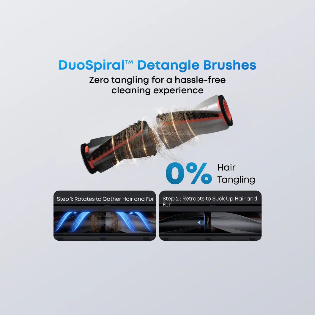 DuoSpiral™ Brushes — Prevent tangles and minimize maintenance for a smooth, hassle-free experience.