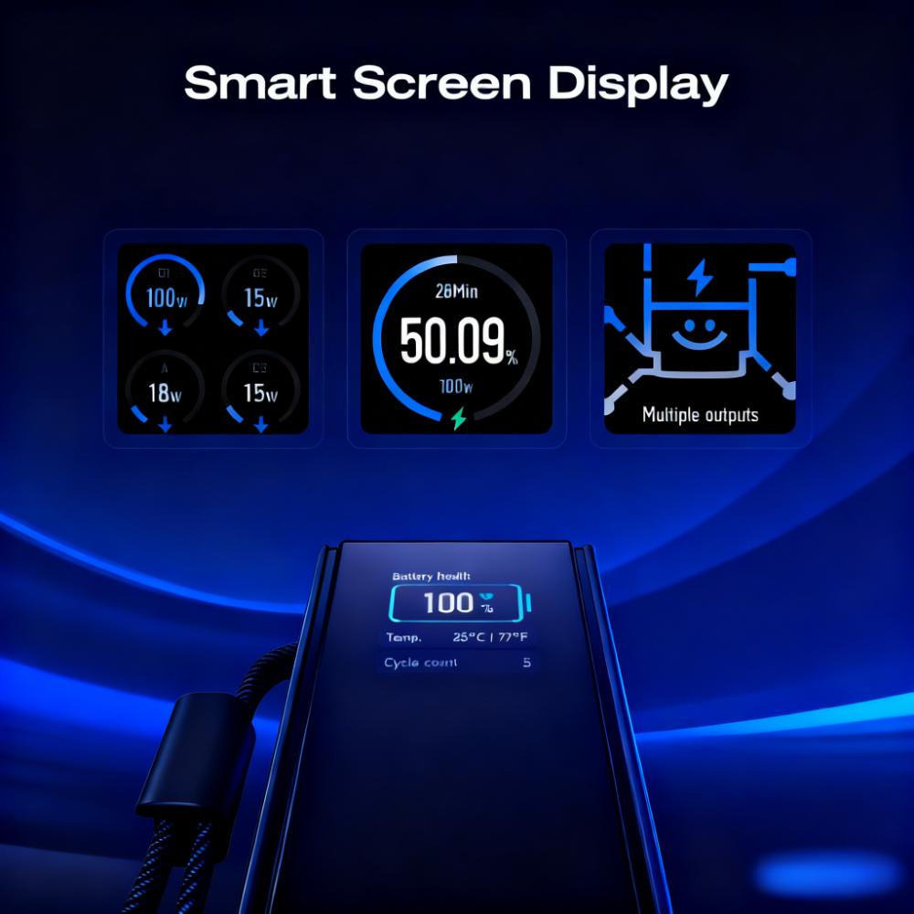 - Smart Screen Display: Shows real-time battery level, charging speed, and device health